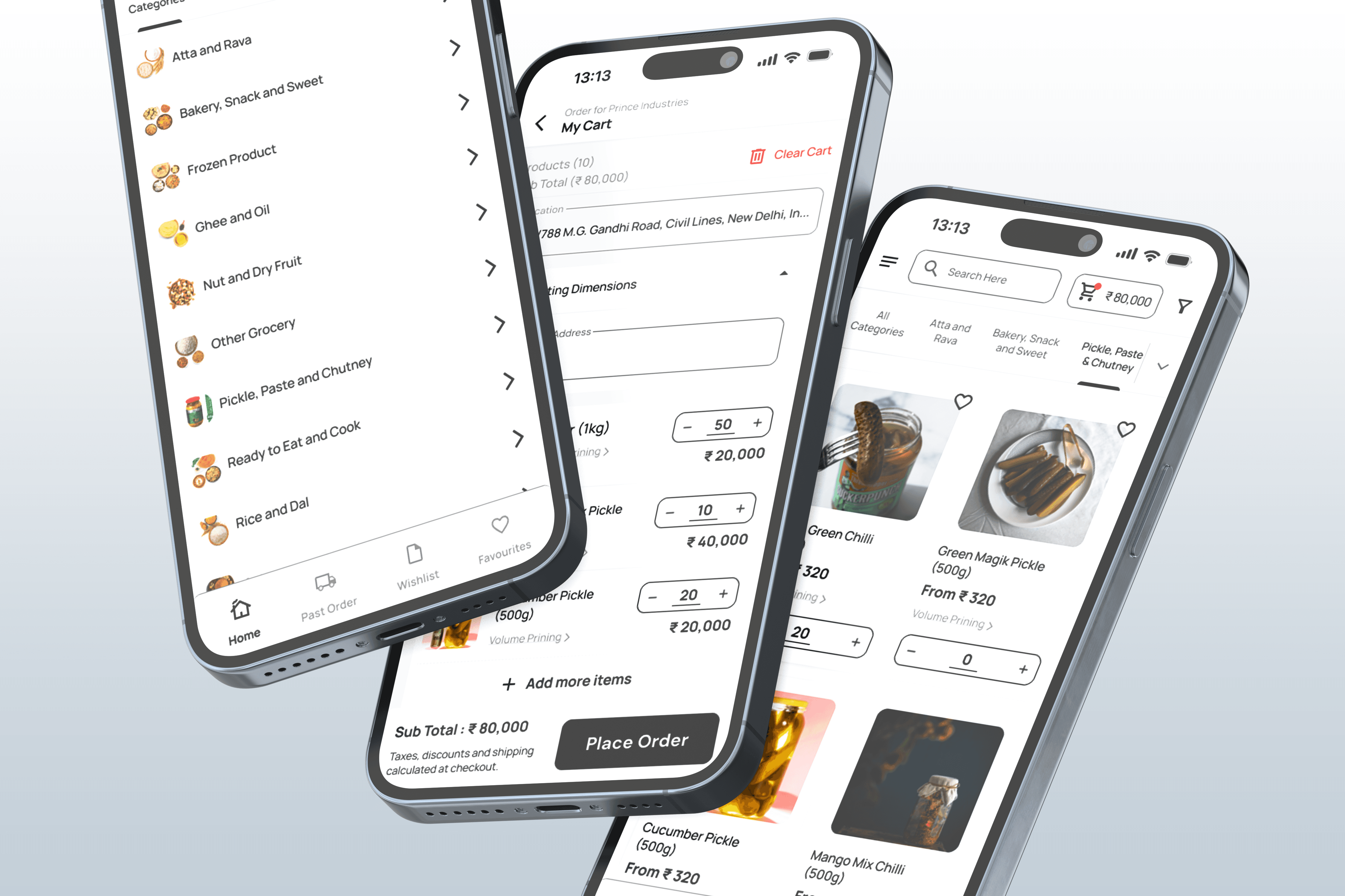 The key challenge was designing for dynamic use cases in the field — poor connectivity, rapidly changing product inventories, and personalized pricing per customer. I collaborated closely with sales reps to understand their pain points, then built UX flows that worked well even in low-bandwidth conditions. Context-aware recommendations, search optimization, and simplified navigation were prioritized to support fast decision-making during client visits.